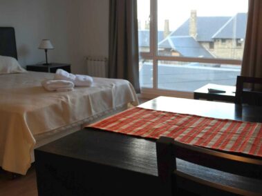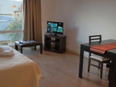 Esta unidad es un Monoambiente, se compone de un sommier matrimonial, capacidad máxima, 2 pasajeros, 3 con cama adicional, baño completo, cocina con vitroceramica, heladera, microondas, jarra hervidora y tostador