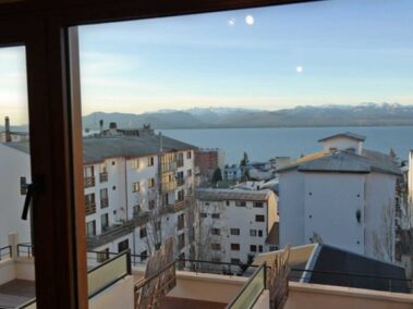 Este amplio mono ambiente con vista al lago se ubica en el centro de la ciudad en un edificio de gran categoría. Ubicado en el centro sobre la calle Moreno a una cuadra de la calle Mitre