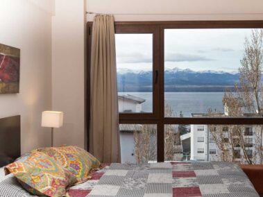 Este amplio mono ambiente con vista al lago se ubica en el centro de la ciudad en un edificio de gran categoría. Ubicado en el centro sobre la calle Moreno a una cuadra de la calle Mitre