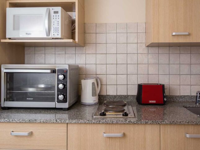 • Cocina eléctrica totalmente equipada, vajilla completa, cafetera y heladera.